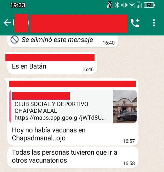 Ademas, una lectora nos hizo llegar la información de que en el vacunatorio del Club social Chapadmalal de Batan, se quedaron sin vacunas durante el día.